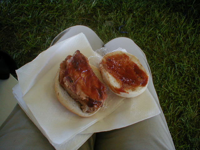 And oh, how it lived up to the hype. A 50 years and counting local tradition in the form of a street festival, the first thing we see is a very long grill covered with boneless pork chops and pork patties. We opted for the former, and in Mary’s case, her chop was a little small, so there were two, each about an inch thick, grilled to just the right moist doneness, with a touch of regional BBQ sauce, all on a soft bun. It was perfection in sandwich form.