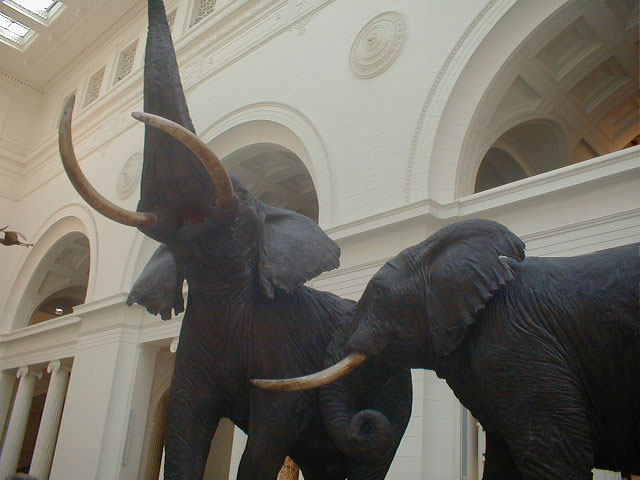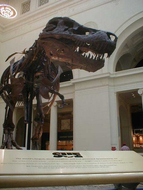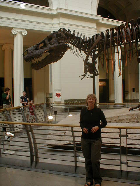 Mary had long wanted to meet T. Tex Sue, because she read a very good book on the controversy surrounding her discovery and the ownership, and as you may have gathered from reading these updates, she often forms crushes on inanimate objects. Sue, the largest and most complete T. Rex skeleton ever found (and a Plucky Lizard, based on the evidence of wounds she suffered during her lifetime) lived up to expectations (who knew a bunch of bones could have charisma?), while the Field Museum, an aesthetically and intellectually pleasing combination of classical museum architecture and up to the minute interactive museum displays, exceeded it.