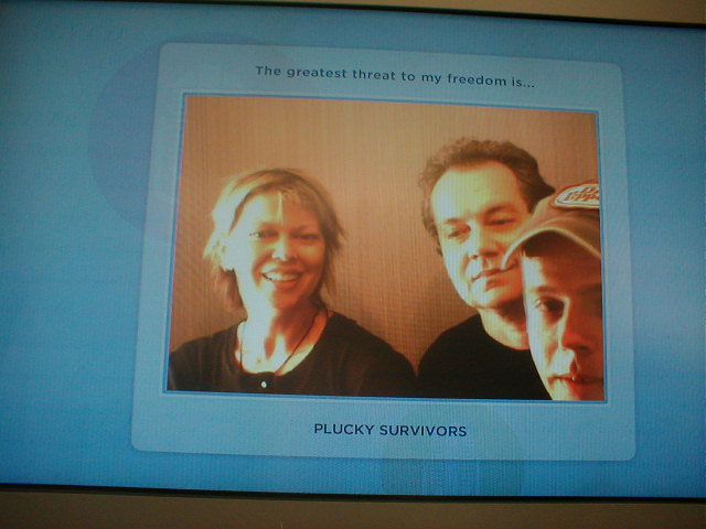 Guests were also encouraged to make a ten second video responding to the question of your choice; Plucky Survivors picked “The greatest threat to freedom is…” (our answer; that everyone seems to have a different definition of the word, and that many consider it an object rather than a concept), thus joining the likes of Donald Rumsfeld, Jimmy Carter, and our New Best Friend Barack Obama, who had previously done the same. It was an excellent way to finish up our latest epic trip.