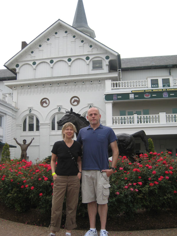 Us in front of the original portion of Churchill Downs, now a National Historic Landmark.