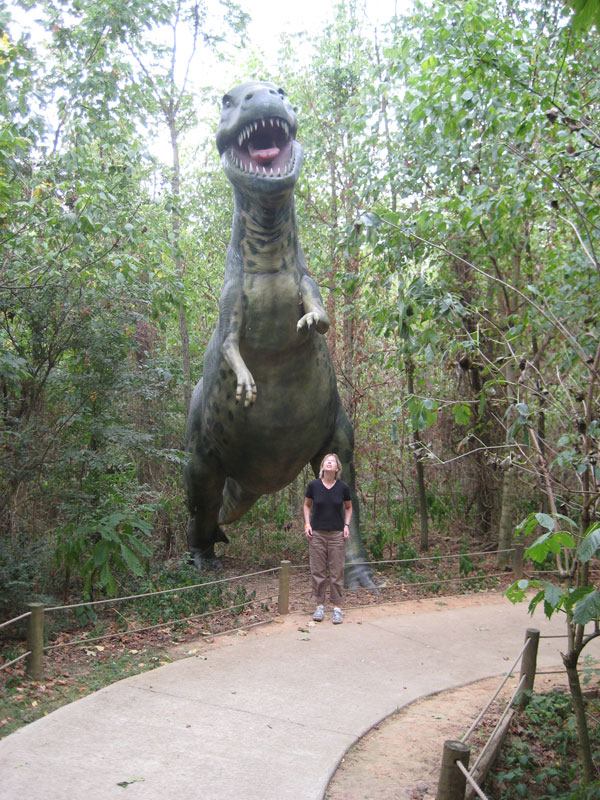 We were surprised and gratified to find this Dinosaur World not just open (always a plus) but thriving and well-maintained. More or less accurate scale replicas of over 100 dinosaurs are scattered through some forests that echoed the primeval setting (if you can ignore the freeway noise in the background). Each has a plaque that simply but comprehensively gives the name, history, and other facts of the particular dino-species. It’s education without pain and with excellent concrete dinosaur bliss.
