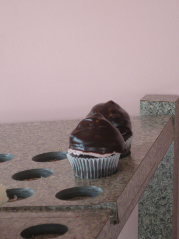 Mary had a simple chocolate with chocolate butter cream icing, with the cake including little chocolate buttons. Rick had a devil’s food with the same buttons, topped with raspberry buttercream dipped in chocolate ganache. We were crushed to hear they don’t ship to LA.