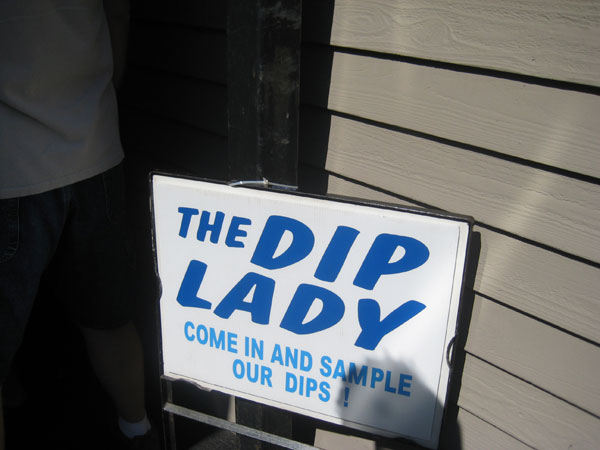 Of course the absence of garlic didn’t bother us at all when we saw the giant roast pig at the BBQ pork place. “Are you serving,” we asked the stand employees. “Yes,” they said. “From that pig?” we asked. “No,” they responded, “That’s tomorrow’s pig. It’s been roasting since Thursday.” We were perfectly satisfied, if not ecstatic with the slices of roast pork from today’s pig. And if it makes you feel any better, we stopped by a garlic dip sample stand and put some on it.
