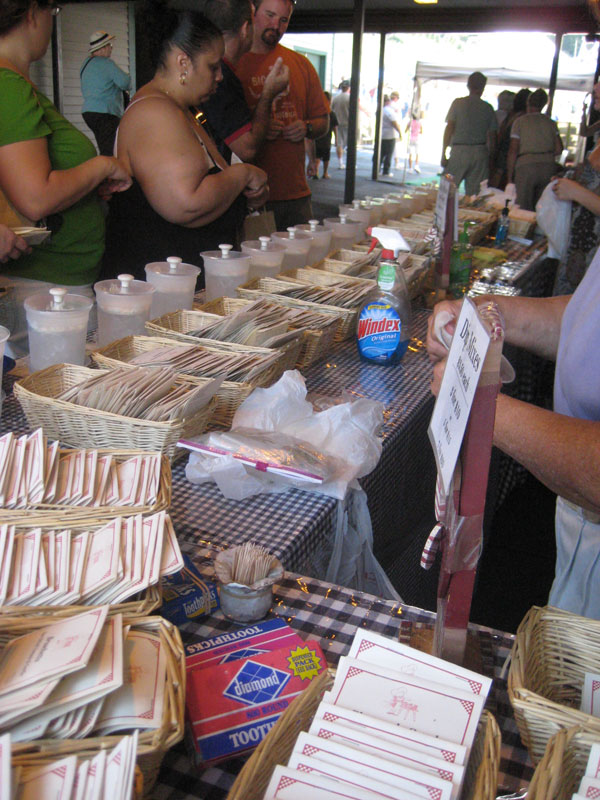 This year they had almost doubled the number of attendees from last year and had 21 booths selling hamburgers from restaurants, church groups, and local civic organization. How to choose, how to choose? Why, let David help you. He steered us in the direction of Deitsch Eck (Dutch Corner) winner of the Best Hamburger prize three years in a row. We’re not in a position to judge that, but we are here to say they make a heck of a burger. Mary had a slight twist to the classic cheeseburger since it had white instead of yellow cheese and Rick added bacon to his and both were polished off in short order. There were lines at every stand but the one here was dozens deep and it would totally be worth the wait.