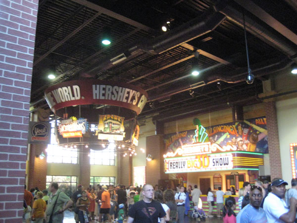 Our final stop was a 3-D attraction, supposedly again conveying the history of chocolate and Hershey. And while it certainly had bells and whistles, not to mention vibrating seats, bubbles floating in the air, and air popping out to hit you in the legs when you least expect it, it’s really just one big elaborate commercial for Hershey products. Yeah, so is the rest of the place, but this one was shamelessly blatant. Adults can skip it but children certainly get a kick out of the experience. And while you may not wish to expose your child to such commercialism, you pretty much crossed that line just by coming here in the first place so why not give them some bubbles?